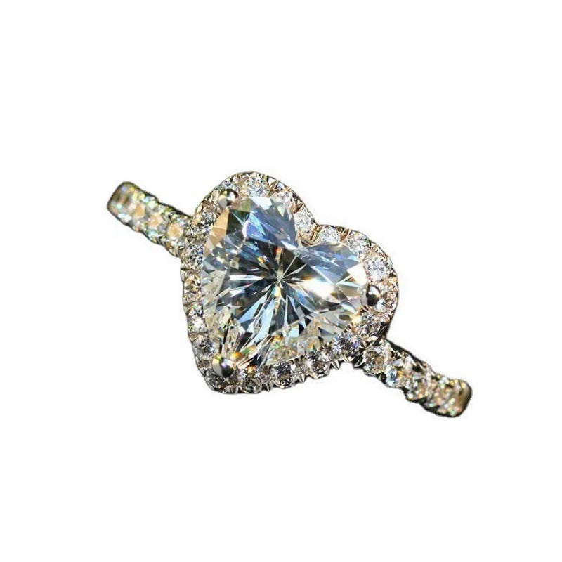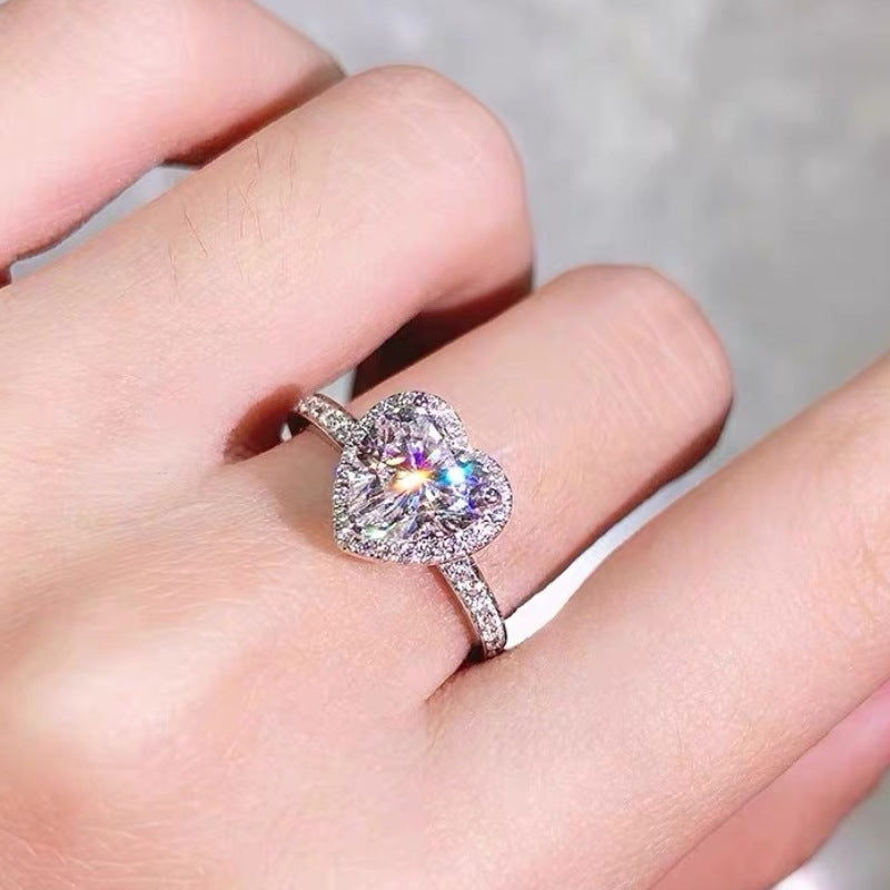 Discover the brilliance of our S925 Silver Moissanite Heart Ring, where luxury meets affordability. Featuring a dazzling 1-carat premium moissanite stone, this ring embodies the sparkle and clarity akin to a true diamond. Crafted from pure sterling silver, its adjustable open band design ensures a perfect fit for any finger size. With its exquisite cut and fiery brilliance, this ring stands as a testament to timeless elegance. Ideal for those seeking hypoallergenic and versatile jewelry, it promises to add a touch of glamour to any outfit, making it a perfect gift for special occasions or a stunning addition to your jewelry collection.